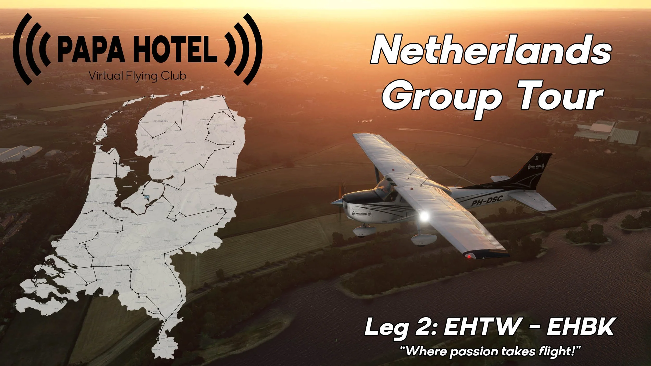 ‘What happens if I can’t make it?’ Well, don’t you worry! We’ve designed and shared all information so that, if you can’t join us online, you can fly the route yourself. If you do want to take part, but rather not fly online, you can always join us during our live stream. That’s right! PAPA HOTEL Dutch Scenery Design will live stream ALL legs of the Netherlands Group Tour on our YouTube Channel!