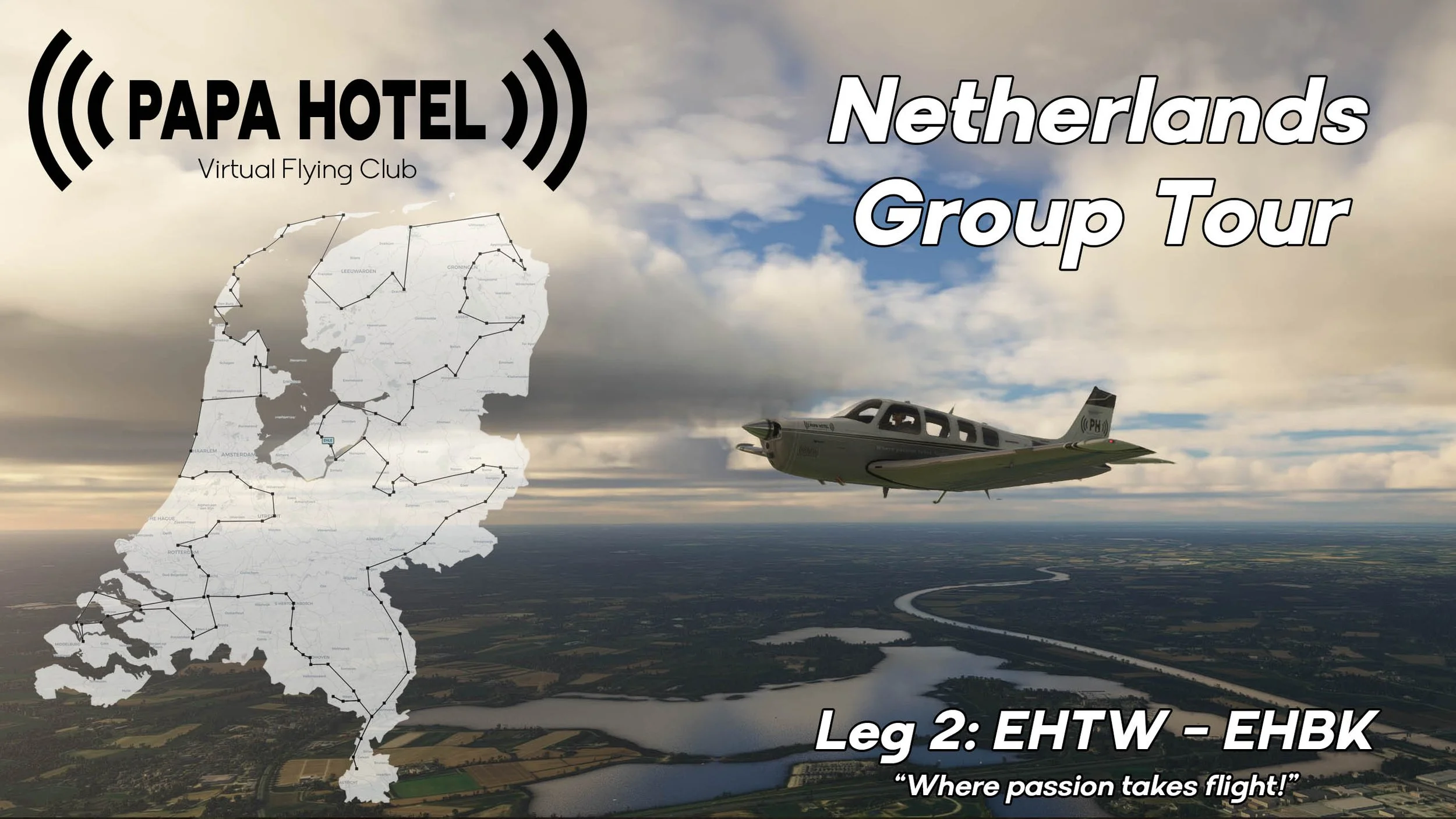 ‘What happens if I can’t make it?’ Well, don’t you worry! We’ve designed and shared all information so that, if you can’t join us online, you can fly the route yourself. If you do want to take part, but rather not fly online, you can always join us during our live stream. That’s right! PAPA HOTEL Dutch Scenery Design will live stream ALL legs of the Netherlands Group Tour on our YouTube Channel!